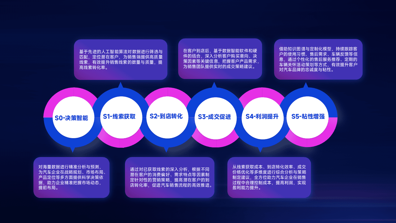 通过拓宽潜在客户来源、、、优化线索分配并提高到店转化率,,以增强销售效率。。。。同时,,,,利用线索数据不断优化分析模型,,,有效提升转化率,,,,扩大营销影响力。。。。